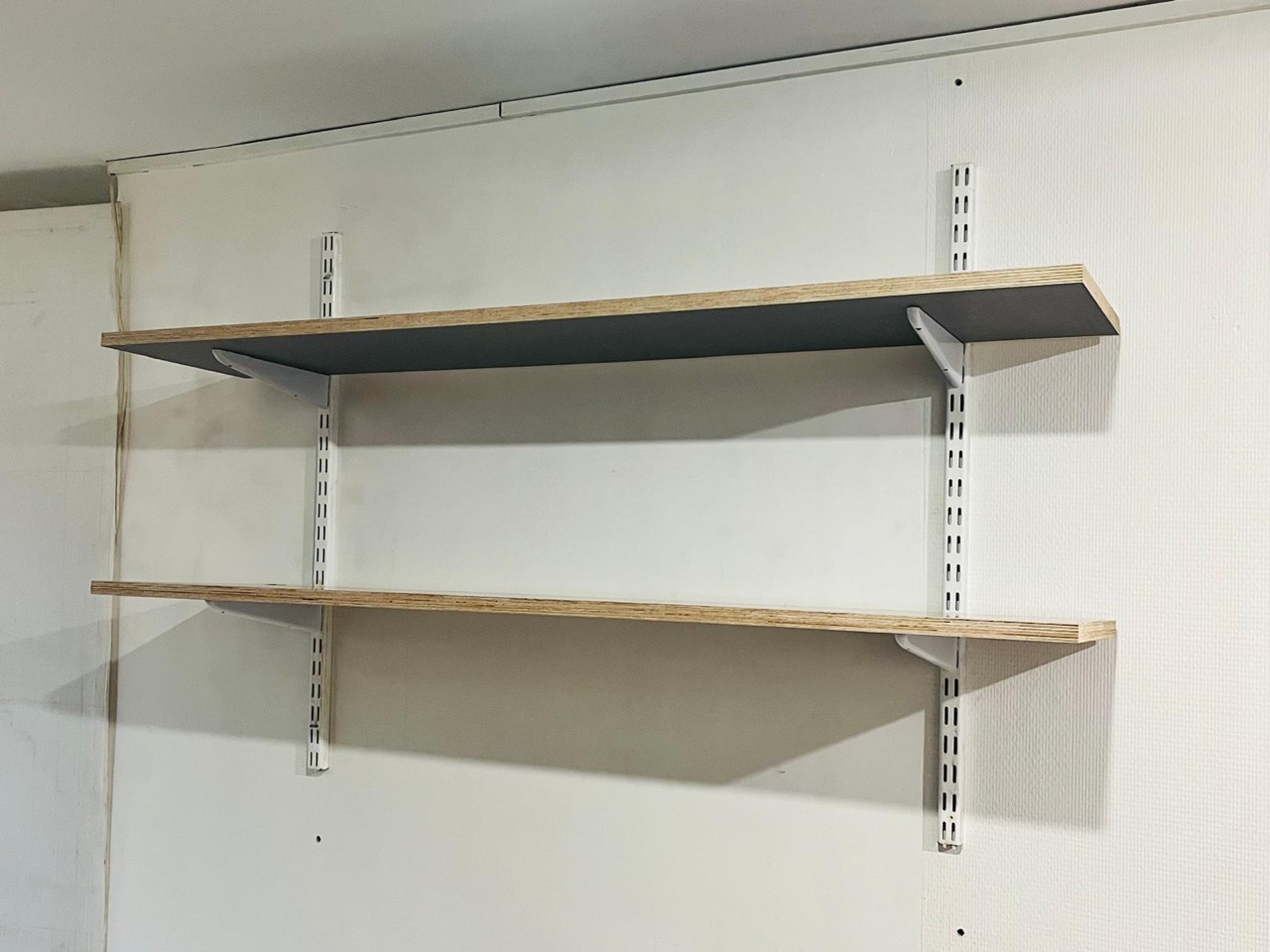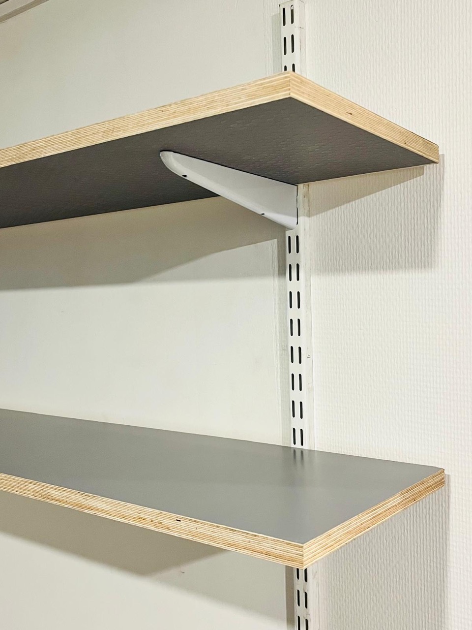 – 2 plaukti (bērza saplāksnis 1219x270x18 mm, pelēks)